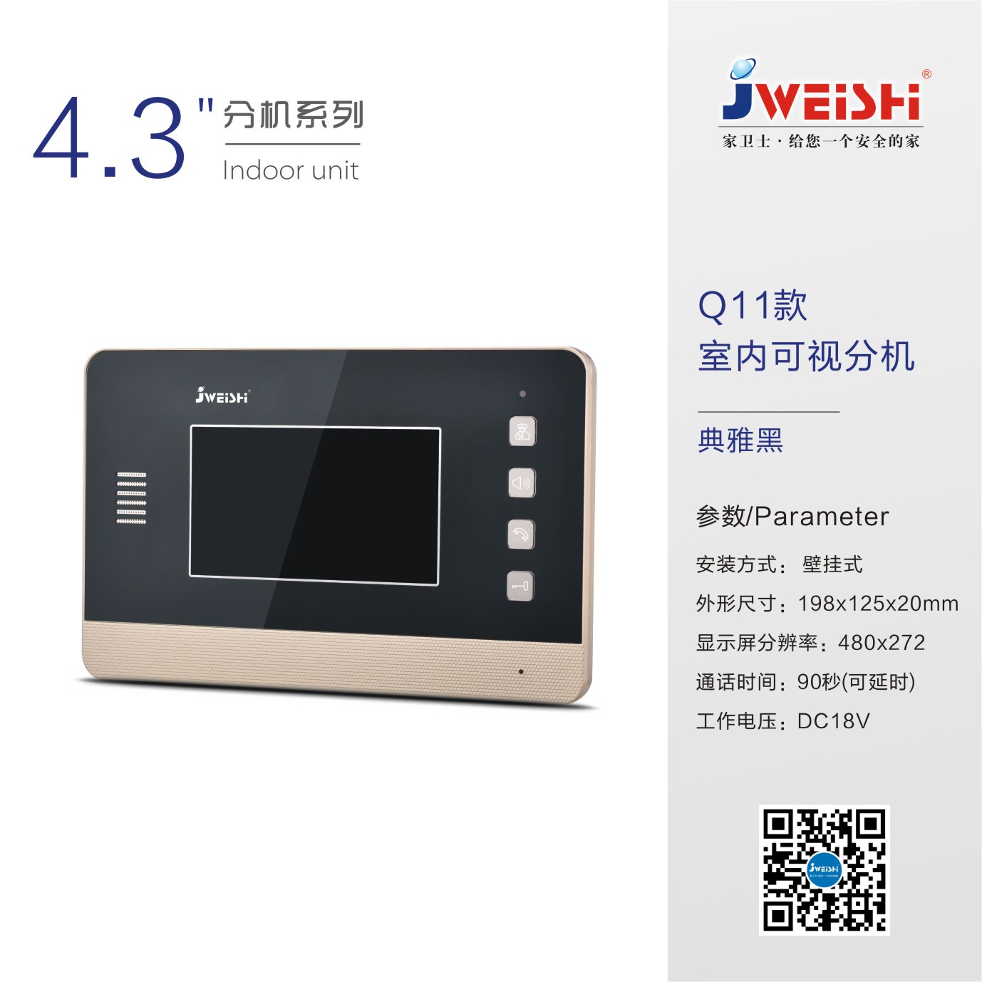显示屏:4.3寸TFT显示屏分辨率:480*272安装方式:壁挂式 外形尺寸:198*125*21(mm)振铃时间:30秒通话时间:90秒(可延时)