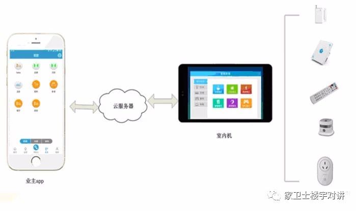 3、服务器实现音视频通话,实现业主、物管远程对门口机开门;实现室内机与业主之间的智能家居的管理与维护;